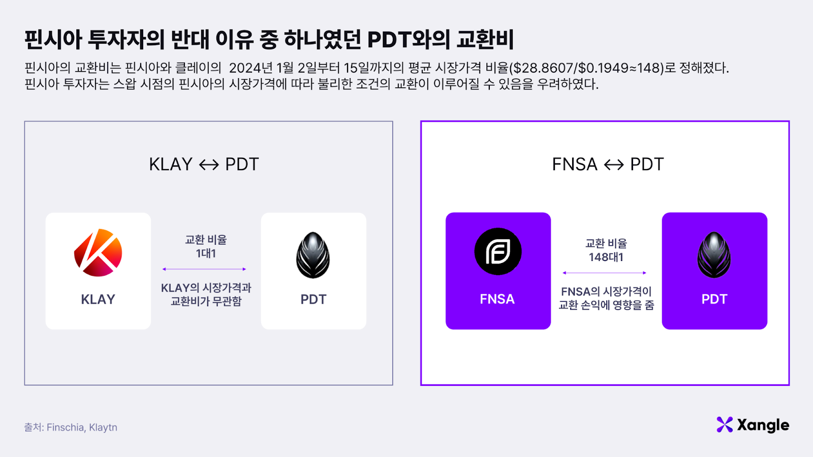 그들이 합병에 부정적인 반응을 보인 데에는 1) 벨리데이터에게 합병 안건을 사전에 알리지 않아 합병의 기술적 타당성을 검토할 수 없었으며 2) 합병 로드맵이 구체적으로 제시되지 않았고 3) 핀시아와 신규 토큰(가칭 PDT)의 교환비 산정 근거를 정확히 알 수 없다는 것이 있었다. 또한, 기관 중심으로 거버넌스 카운실(GC)을 운영하는 클레이튼과 일반 투자자도 자산 예치를 통해 거버넌스에 참여하는 핀시아가 통합되면, 핀시아 투자자의 거버넌스 진입장벽이 합병 전보다 높아질 것이라는 우려가 있어, 100%에 가까운 찬성률을 보인 클레이튼과 달리 핀시아 투자자의 반발이 거센 상황이었다.